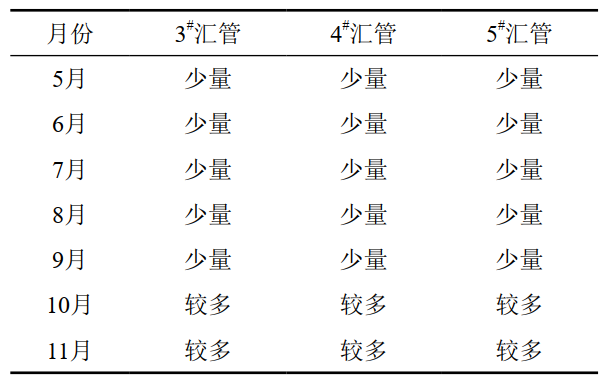 (2)過(guò)濾分離器及其上游匯管排污情況。5—9月污物較少,10—11月污物較多(表 3)。
