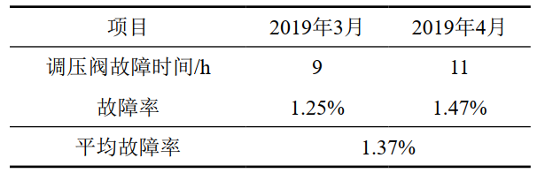 經(jīng)統計,2019年3—4月調壓閥故障率由之前的7.58%降低到1.37%,故障率顯著(zhù)降低(表 6)。
