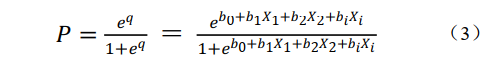 式中:P為研究區地質(zhì)災害發(fā)生概率;e為邏輯回歸方程自然常數;b0為邏輯回歸方程截距(邏輯回歸方程的一個(gè)常數項);bi(i=1,2,3…,n)為邏輯回歸模型中對應的評價(jià)因子X(jué)i(i=1,2,3…,n)的邏輯回歸系數。