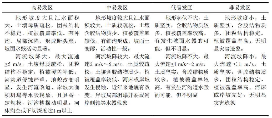 表 6 地質(zhì)災害易發(fā)程度分區主要特征