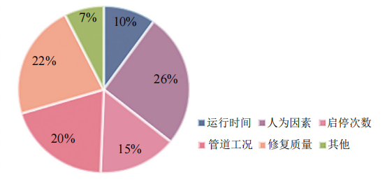 從圖 3可以看出,人為操作因素、密封修復質(zhì)量、管道工況、啟停次數是密封故障的主要因素,合計占比為83%,其次是離心壓縮機組運行時(shí)間和其他因素占17%。