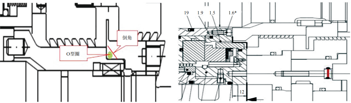 (7)結合密封失效情況和密封裝配結構形式,對干氣密封螺母與連接軸套之間進(jìn)行了改進(jìn),新增加一道O型圈密封,以增強其密封效果,有效防止隔離密封的密封性下降對干氣密封的影響,如圖 4所示。