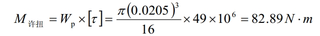 用加力杠?chē)L試轉動(dòng)絲杠,防止用力過(guò)大使絲杠出現斷裂,高壓力油氣從絲杠斷裂處溢出。對錫青銅材料的絲杠Tr24X3進(jìn)行扭矩計算(最小徑Φ20.5 mm),現場(chǎng)加力矩不大于許用力矩: