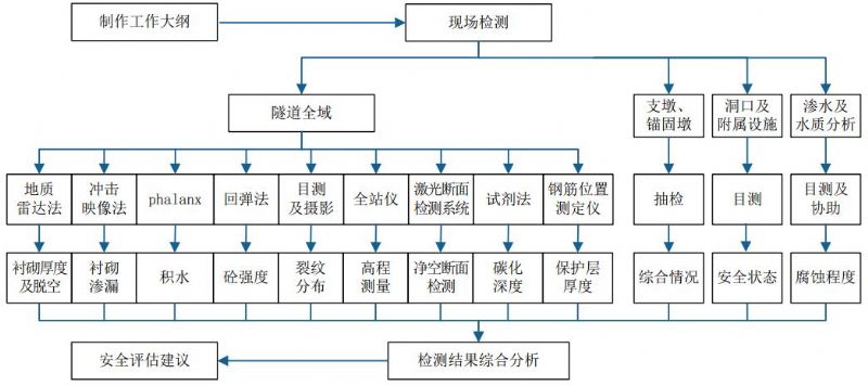 隧道本體結構檢測路線(xiàn)如圖 2所示。