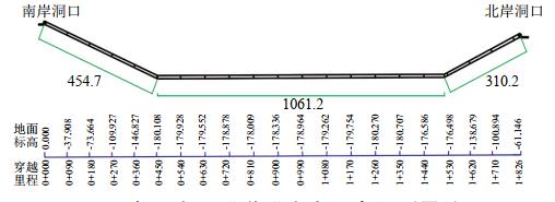 東江水下隧道長(cháng)1826米,于2012年竣工投產(chǎn)。穿越北岸(進(jìn)口)位于廣東省惠州市龍溪鎮,南岸(出口)位于惠州市潼湖鎮。隧道內自然充水保護,進(jìn)出口設洞門(mén),洞口采用厚約3 m~5 m的覆土保護。隧道采用“斜井+平洞+斜井”結構[1],其中,北岸斜井長(cháng)310.2 m、坡度24.6°,平洞長(cháng)度1061.2 m,南岸斜井長(cháng)454.7 m、坡度23.34°。斜井和平洞斷面均為直墻圓弧形(3 m×3 m),斜井與平洞之間為馬頭門(mén),底部設排水倉。