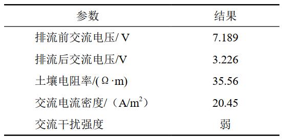 表 1 京滬高鐵穿越段管道交流干擾排流效果