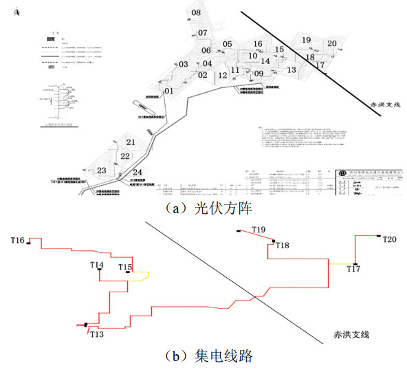 圖 1 光伏電站方陣和集電線(xiàn)路與管道位置示意圖