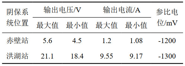 表 3 赤洪支線(xiàn)陰保系統運行參數