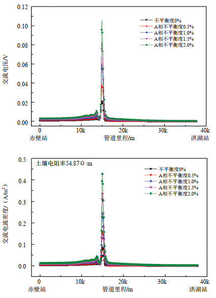 表 4 集電線(xiàn)路不同三相不平衡度時(shí)交流干擾計算結果