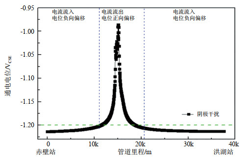 (2)直流干擾評價(jià)指標。直流干擾對管道造成的主要危害為導致管道陰極保護電位無(wú)法滿(mǎn)足要求,影響管道陰極保護效果。根據GB 50991―2014《埋地鋼質(zhì)管道直流干擾防護技術(shù)標準》規定,當存在直流電流入地時(shí),管道極化電位應滿(mǎn)足﹣0.85 V~﹣1.2 V。