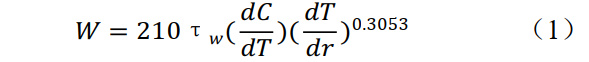 蠟沉積模型選用黃啟玉動(dòng)力學(xué)模型,該模型具有簡(jiǎn)單實(shí)用,精度合理的特點(diǎn),用于計算我國含蠟原油管道蠟沉積速率的實(shí)用性較高[4]。模型計算式為:
