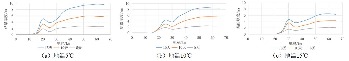 2 沿線(xiàn)地溫對管道結蠟分布影響情況