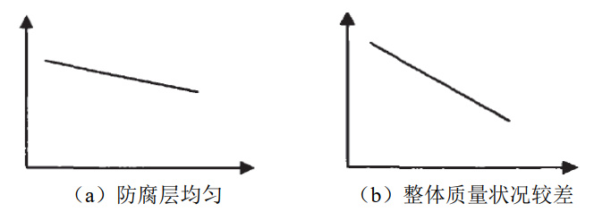 1 電流信號衰減程度與防腐層缺陷關(guān)系示意圖