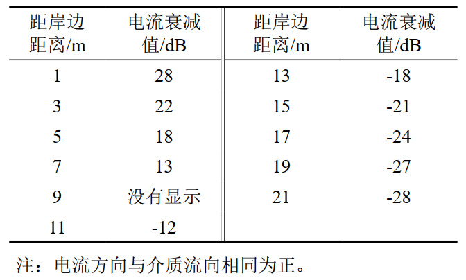 4 水體內管線(xiàn)等勢體質(zhì)點(diǎn)模型兩側電流衰減檢測結果
