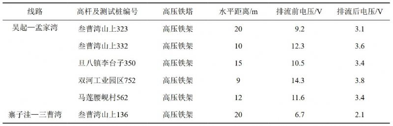 (2)高壓輸電線(xiàn)路及高鐵的近距離影響。隨著(zhù)陜北地區經(jīng)濟發(fā)展,750 kV以上的輸電線(xiàn)路及鐵路電氣化改造多個(gè)項目實(shí)施,與原有輸油管道形成多處交叉及近距離的并行敷設。即使嚴格按照GB 50253―2014《輸油管道工程設計規范》中4.1.6的要求控制間距,實(shí)踐中發(fā)現由高壓輸電線(xiàn)路以及高鐵運營(yíng)所引發(fā)的雜散電流對輸油管道的干擾并不能完全消除。例如,吳延線(xiàn)路6處管段在水平距離大于高壓電塔塔高、無(wú)排流措施的情況時(shí)交流干擾電壓在4 V~15 V之間,安裝固態(tài)去耦合器加接地的排流措施后交流干擾電壓才降至小于4 V(表 1)。