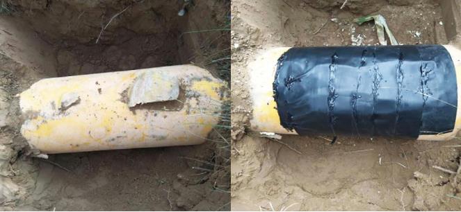 (2)修復防腐層漏點(diǎn),提升管道絕緣電阻。公司每年組織巡護隊管理人員用DM(PCM+)進(jìn)行兩次外防腐層檢測,查找出防腐層破損點(diǎn)和防腐層老化部位進(jìn)行修復(圖2)。尤其在管段補口處,采用無(wú)溶劑環(huán)氧涂料+粘彈體防腐膠帶進(jìn)行補口處理,這樣既能阻止雨水進(jìn)入,又可防止雜散電流流入。