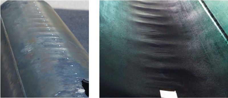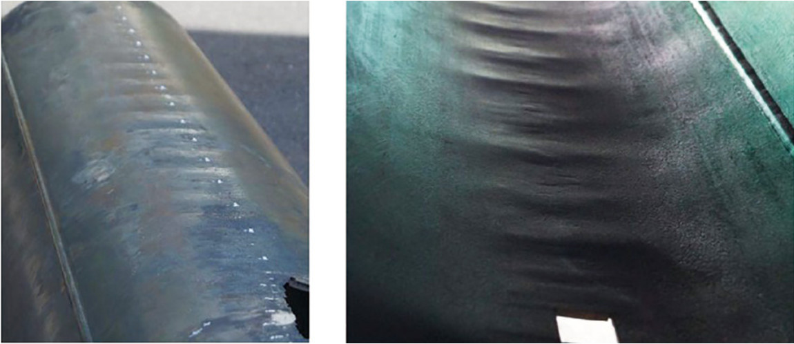 (2)修訂或補充GESIP(法國石油和化學(xué)安全工業(yè)協(xié)會(huì ))指南中規定的凹陷驗收標準(小于管道公稱(chēng)直徑的6%,焊縫周?chē)?%),尤其是當管道上部發(fā)生變形時(shí)。本起事故中變形量?jì)H為標稱(chēng)直徑的1.2%,但出現引發(fā)導致泄漏的多個(gè)裂紋。在組合缺陷的情況下,GESIP指南標準不再適用。一旦檢測到凹陷變形,考慮到凹陷的位置和大小,應適當的進(jìn)行開(kāi)挖驗證,以驗證是否存在裂縫,尤其是在老舊管道上。