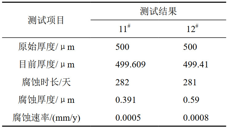 (4)2022年10月,通過(guò)現場(chǎng)11#和12#ER腐蝕探頭采集儀數據計算腐蝕速率,結果如表 2所示。腐蝕速率均小于0.01 mm/y,腐蝕風(fēng)險評價(jià)為“低”。