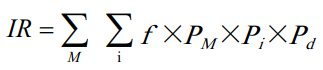 式中:f 為管道失效頻率;PM為氣象條件概率;Pi為點(diǎn)火概率;Pd為人員死亡概率。