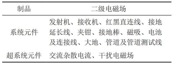 (1)功能分析。結合系統分析的內容(表 1),建立已有系統功能模型(圖 1)并進(jìn)行分析,明確了系統元件及其之間的相互關(guān)系,并得出導致管道位置和埋深測量不準確或者測不出來(lái)等問(wèn)題的功能因素。其中,干擾電磁場(chǎng)會(huì )影響二級磁場(chǎng),導致接收機無(wú)法得到準確的管道位置及埋深。