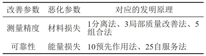 (2)轉換成TRIZ標準沖突。改善的參數包括測量精度和可靠性,惡化的參數包括材料損失和能量損失。