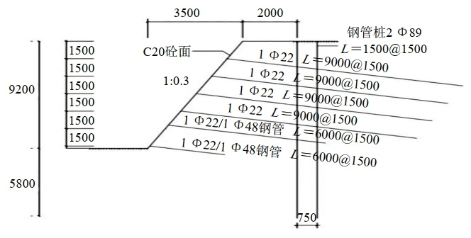 4 某工程微型鋼管樁復合土釘墻支護結構示意圖