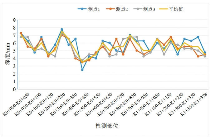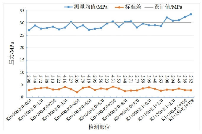 沿檢測方向,每40 m測一組高程,檢測結果顯示,隧道實(shí)測高程與設計高程吻合度高,符合設計要求。