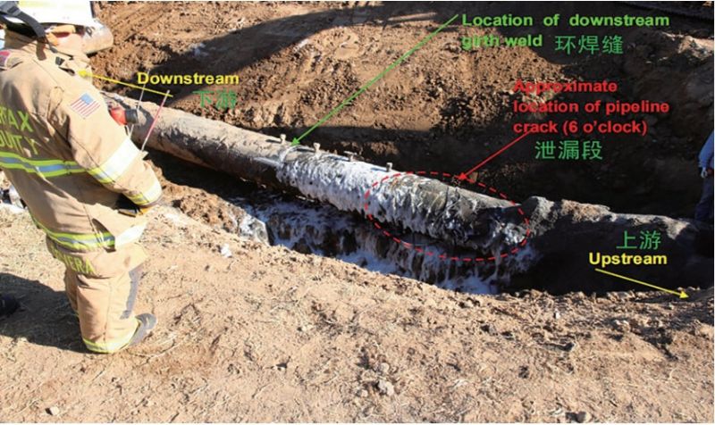 直接原因是長(cháng)期運營(yíng)過(guò)程中,受壓力波動(dòng)和交變荷載的影響以及暴露在地下環(huán)境,管道凹陷處出現了穿透的腐蝕性疲勞裂紋。加之管道SCADA系統在監測小泄漏方面的局限性,也延誤了對泄漏早期的識別與確認。