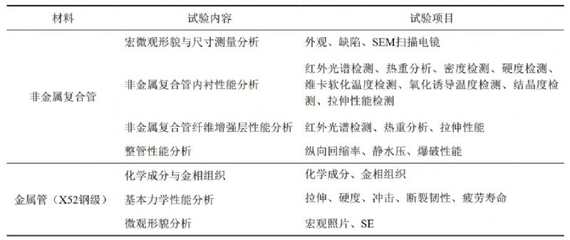 1 金屬管和非金屬管試驗內容