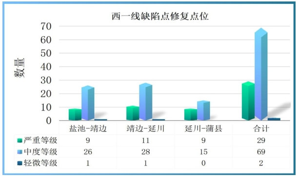 1 西一線(xiàn)防腐層缺陷點(diǎn)嚴重程度分布情況