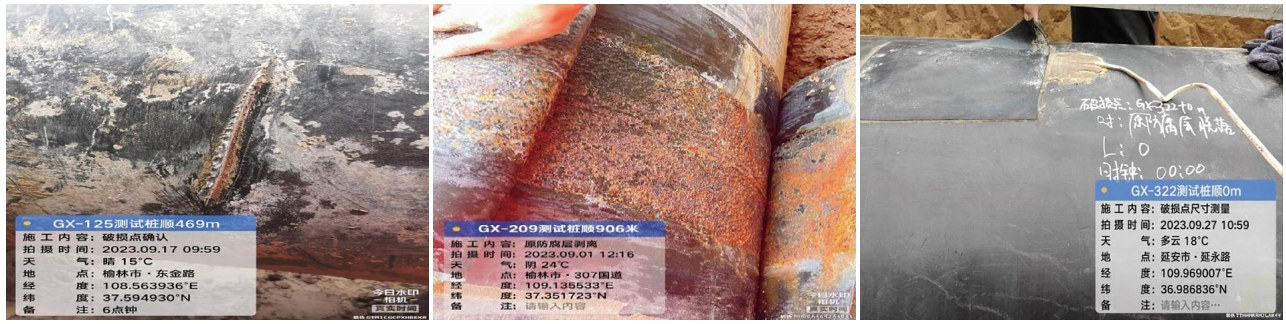 2 機械損傷、補口帶及補傷片失效剝離典型圖