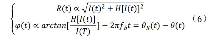 式中fb為AOM的頻移量,一般為80 MHz或者200 MHz。由于fb通常具有較高的頻率與較窄的頻寬,我們可以簡(jiǎn)單地利用希爾伯特變換解調出相位信號: