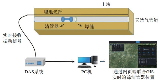 需求與功能分析。清管作業(yè)是天然氣管道維護的重要環(huán)節,清管器跟蹤則是清管作業(yè)中的重要工作內容。目前主要依靠人工和點(diǎn)式傳感器進(jìn)行離散式監測,這種方式不僅耗費人力物力,而且只能定點(diǎn)跟蹤,無(wú)法實(shí)現實(shí)時(shí)在線(xiàn)跟蹤。清管器在通過(guò)管道焊縫時(shí)會(huì )產(chǎn)生振動(dòng),因此可利用DAS系統采集這些振動(dòng)聲波信號。通過(guò)信號分析及特征提取,得到清管器的位置信息,從而實(shí)現對清管器的在線(xiàn)跟蹤(圖 4)。
