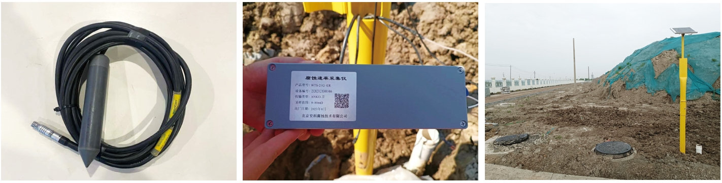 (2)從腐蝕機理分析可以看出,為了減緩鹽堿地金屬管道的腐蝕,除合理選材和增加防腐涂層外,還應實(shí)施陰極保護,即外加電流或者犧牲陽(yáng)極,向金屬注入電子,抑制對陽(yáng)極鐵的腐蝕。管道施加陰極保護后應監測陰極保護的效果。建議同步安裝ER腐蝕速率探頭監測裝置,評估其腐蝕速率減緩幅度。