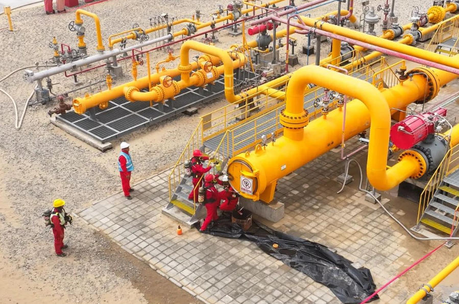 近日,經(jīng)過(guò)23小時(shí)連續奮戰,西北油田完成油田管徑最大、運行壓力最高、輸氣量最大的順北天然氣外輸管道首次在線(xiàn)清管作業(yè),確保順北油氣田天然氣外輸通暢。